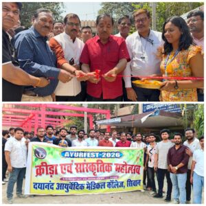 Sports Festival: दयानन्द आयुर्वेदिक मेडिकल कॉलेज एवं अस्पताल, सिवान में तीन दिवसीय “क्रीड़ा एवं सांस्कृतिक महोत्सव – AYURFEST-2026” का आगाज: खेल और संस्कृति के संग छात्रों की प्रतिभा को मिलेगा मंच April 7, 2026