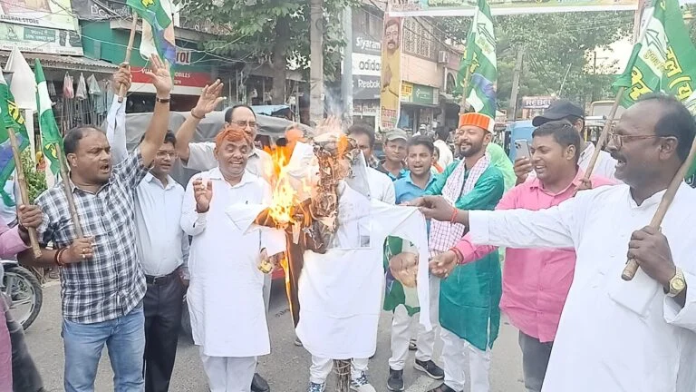 सिवान। जनता दल यूनाइटेड (जदयू) अति पिछड़ा प्रकोष्ठ ने गुरुवार को कांग्रेस नेता राहुल गांधी के खिलाफ जोरदार विरोध प्रदर्शन किया। कार्यकर्ताओं ने जिला परिषद कैंपस से जुलूस निकाल कर जेपी चौक पर राहुल गांधी का पुतला दहन किया और ‘राहुल गांधी मुर्दाबाद’, ‘जननायक का अपमान नहीं सहेगा बिहार’ जैसे नारे लगाए।