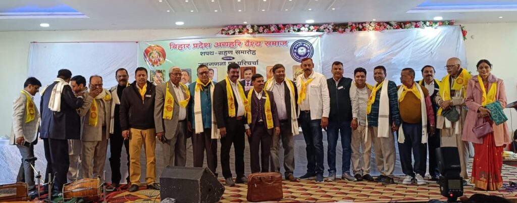 संवाददाता। पटना। राजधानी पटना के गौरीचक में बिहार प्रदेश अग्रहरी वैश्य समाज एवं जिला स्तरीय पदाधिकारियों का शपथ-ग्रहण समारोह भव्य, ऐतिहासिक और गरिमामय वातावरण में संपन्न हुआ। समारोह में समाज के नवनियुक्त पदाधिकारियों ने संगठन को मजबूत करने, सामाजिक एकता बनाए रखने और समाजहित में ईमानदारी से कार्य करने की शपथ ली। कार्यक्रम में बड़ी संख्या में प्रदेश भर से आए अग्रहरी समाज के लोग, समाजसेवी, बुद्धिजीवी और महिलाएं-पुरुष मौजूद रहे।