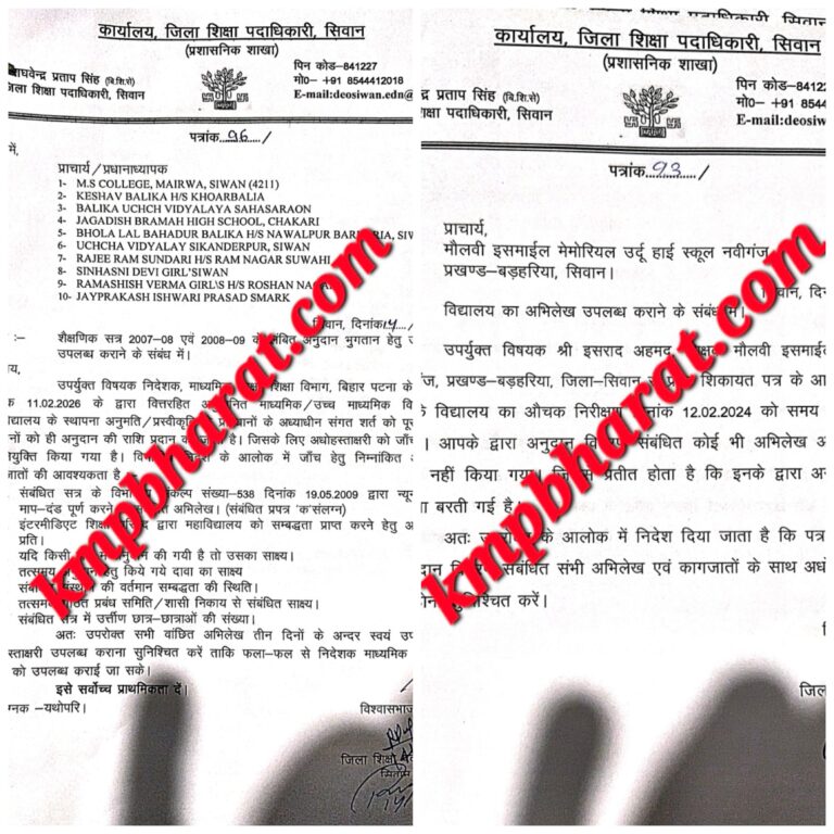 इसी क्रम में मौलवी इस्माईल मेमोरियल उर्दू हाई स्कूल, नवीगंज (बड़हरिया) को अलग से नोटिस जारी किया गया है। यह कार्रवाई विद्यालय के शिक्षक इसराद अहमद की शिकायत के बाद हुई।