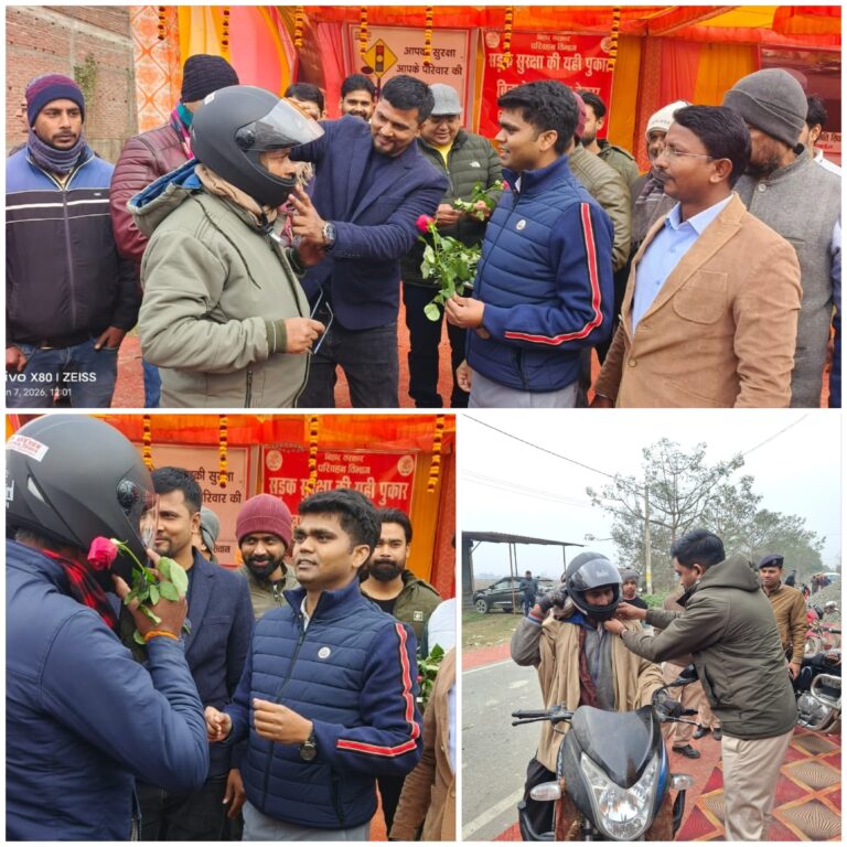 राष्ट्रीय सड़क सुरक्षा माह 2026 के तहत सिवान जिले में यातायात नियमों के प्रति लोगों को जागरूक करने का अभियान पूरे जोर-शोर से चल रहा है। 01 जनवरी से 31 जनवरी 2026 तक चलने वाले इस अभियान के सातवें दिन महाराजगंज अनुमंडल कार्यालय भवन में विशेष कार्यक्रम का आयोजन किया गया, जिसमें जिला पदाधिकारी सिवान श्री विवेक रंजन मैत्रेय ने अनुमंडल के पदाधिकारियों और कर्मियों को सड़क सुरक्षा से संबंधित शपथ दिलाई।
