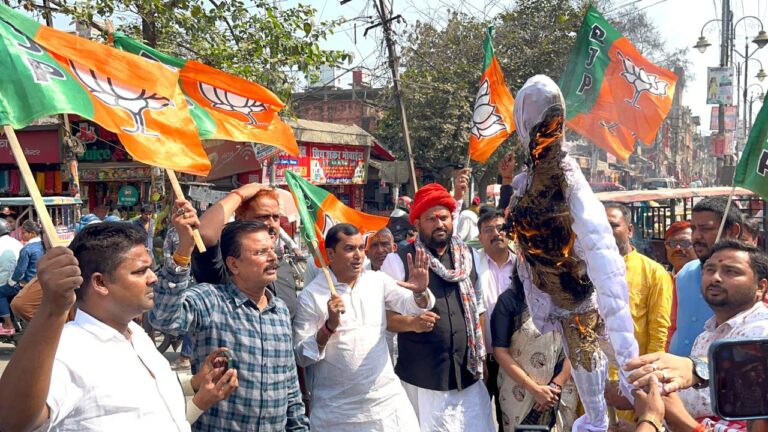 BJP Siwan: जेपी चौक पर भड़का सियासी तापमान: राहुल गांधी का पुतला दहन, एआई सम्मेलन विवाद पर युवा मोर्चा का प्रदर्शन