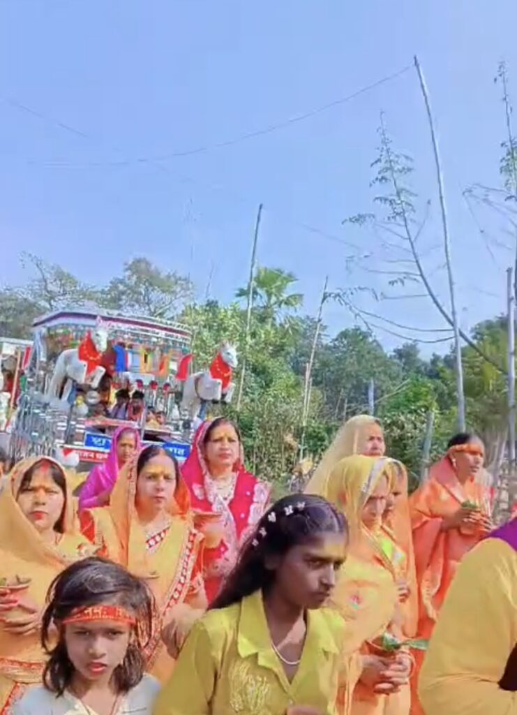 शिव मंदिर से निकली शोभायात्रा, दाहा नदी से जल भरकर लौटी; नौ दिनों तक कथा, रामलीला और महाभंडारे का होगा आयोजन