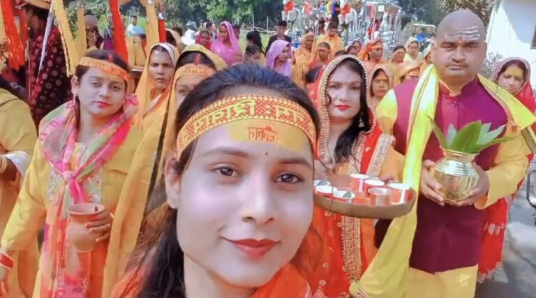 शिव मंदिर से निकली शोभायात्रा, दाहा नदी से जल भरकर लौटी; नौ दिनों तक कथा, रामलीला और महाभंडारे का होगा आयोजन