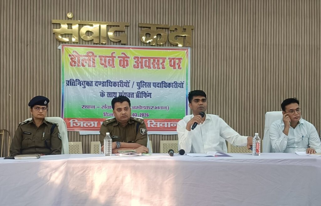 होली पर्व को शांतिपूर्ण और सौहार्दपूर्ण वातावरण में संपन्न कराने को लेकर जिला प्रशासन पूरी तरह मुस्तैद है। समाहरणालय सभागार में आयोजित संयुक्त ब्रीफिंग में जिला पदाधिकारी विवेक रंजन मैत्रेय एवं पुलिस अधीक्षक पूरन कुमार झा ने प्रतिनियुक्त दंडाधिकारी और पुलिस अधिकारियों को आवश्यक दिशा-निर्देश दिए। अधिकारियों ने स्पष्ट कहा कि 4 मार्च को मनाए जाने वाले होली पर्व के दौरान विधि व्यवस्था किसी भी हाल में प्रभावित नहीं होनी चाहिए।