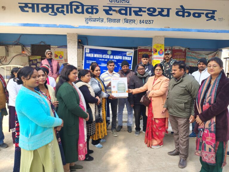 नववर्ष के अवसर पर इनर व्हील क्लब आद्या की महिलाओं ने समाज सेवा के जरिए साल की सकारात्मक शुरुआत की। क्लब की ओर से हुसैनगंज, सिवान स्थित सामुदायिक स्वास्थ्य केंद्र में सेवा कार्यक्रम आयोजित किया गया, जिसमें अस्पताल को दो रूम हीटर और कंबल प्रदान किए गए। ठंड के मौसम को देखते हुए यह सहयोग प्रसूता महिलाओं और नवजात शिशुओं के लिए बेहद उपयोगी साबित हुआ।