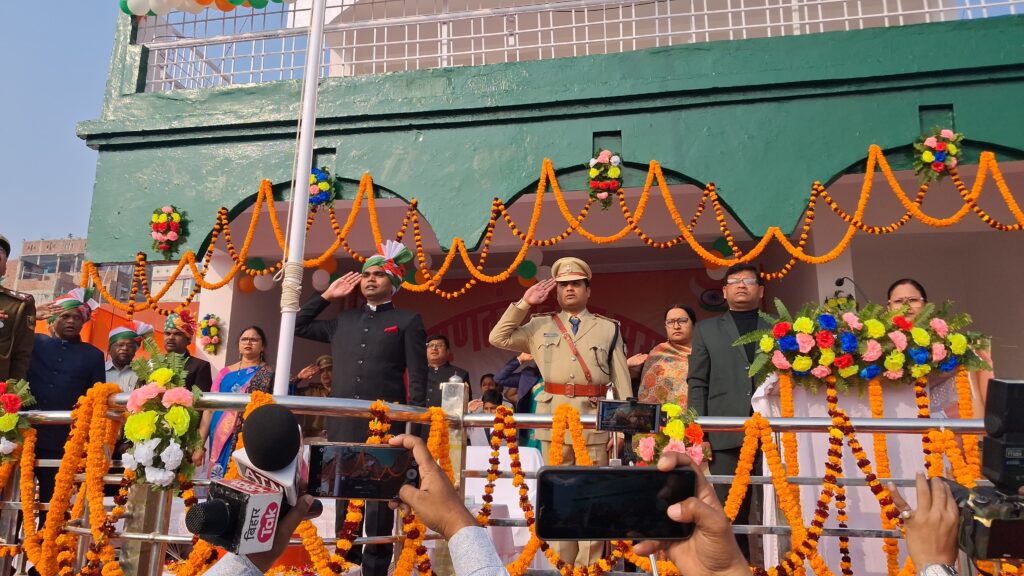 कार्यक्रम की शुरुआत सुबह 9:15 बजे राजेन्द्र स्टेडियम में जिला पदाधिकारी विवेक रंजन मैत्रेय द्वारा राष्ट्रीय ध्वजारोहण से हुई। इसके बाद 9:30 बजे वहीं प्रशस्ति पत्र वितरण कार्यक्रम चला, जिसमें विभिन्न क्षेत्रों में उत्कृष्ट कार्य करने वाले कर्मियों और नागरिकों को सम्मानित किया गया।